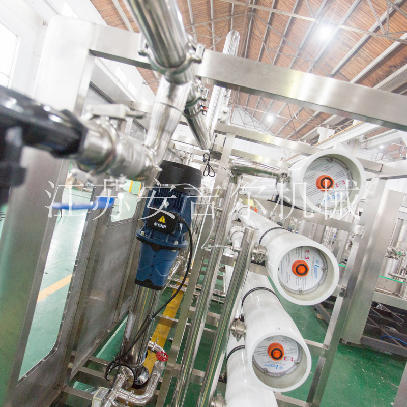 采用反滲透技術(shù)進(jìn)行脫鹽,反滲透膜孔徑僅為0.001微米,可去除溶解性固體和細(xì)菌,病毒等,脫鹽率達(dá)99.6%以上,符合國(guó)家標(biāo)準(zhǔn)生產(chǎn)純凈水,主機(jī)部分包含安全過(guò)濾器,高壓泵和反滲透膜,安全過(guò)濾器為四級(jí)及以上預(yù)處理系統(tǒng),高壓泵是反滲透膜元件的主要設(shè)備之一提供足夠的壓力以克服對(duì)壓力的穿透阻力并運(yùn)行以滿足裝置達(dá)到額定水的需要。