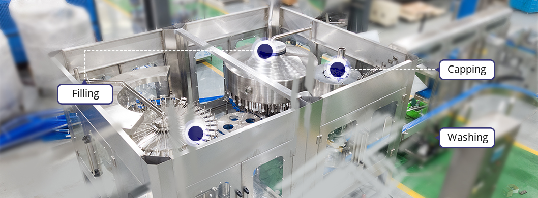 灌裝機主要用于灌裝飲用水。它結(jié)合了沖洗,灌裝和封蓋作為一個適用于PET或其他塑料瓶的自動化設備。采用新型常壓灌裝操作,使其能夠比其他同級別的機器更高效,更穩(wěn)定地填充更多輸出。